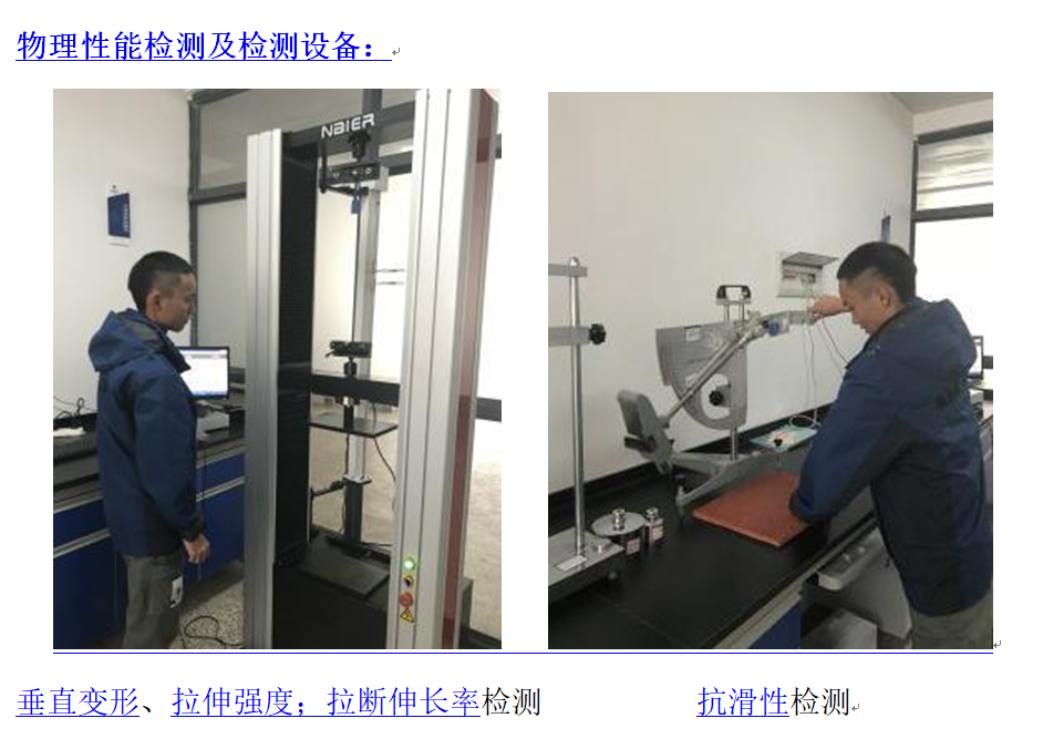國檢集團•云南合信公司設有合成材料相關辦公場所一千余平方米。先后購置了合成材料相關的檢測儀器設備10余臺(套),價值數(shù)百萬元。其中包括:塑膠跑道面層