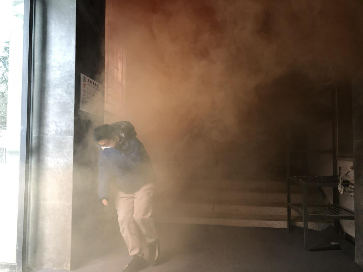 消防安全知識(shí)培訓(xùn)結(jié)束后,所有參訓(xùn)員工進(jìn)行了煙道疏散逃生演練,模擬在濃煙環(huán)境下進(jìn)行疏散自救逃生,在培訓(xùn)人員的指揮下,參訓(xùn)員工按照疏散逃生要求,緊張、有序地沿著樓梯撤離到樓下指定區(qū)域。