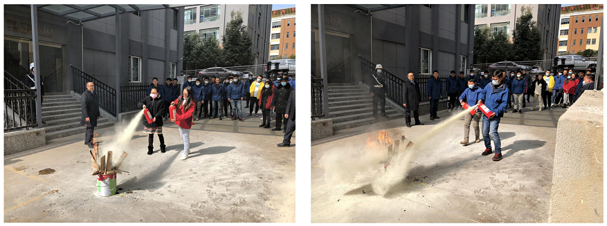 員工實(shí)踐使用滅火器滅火