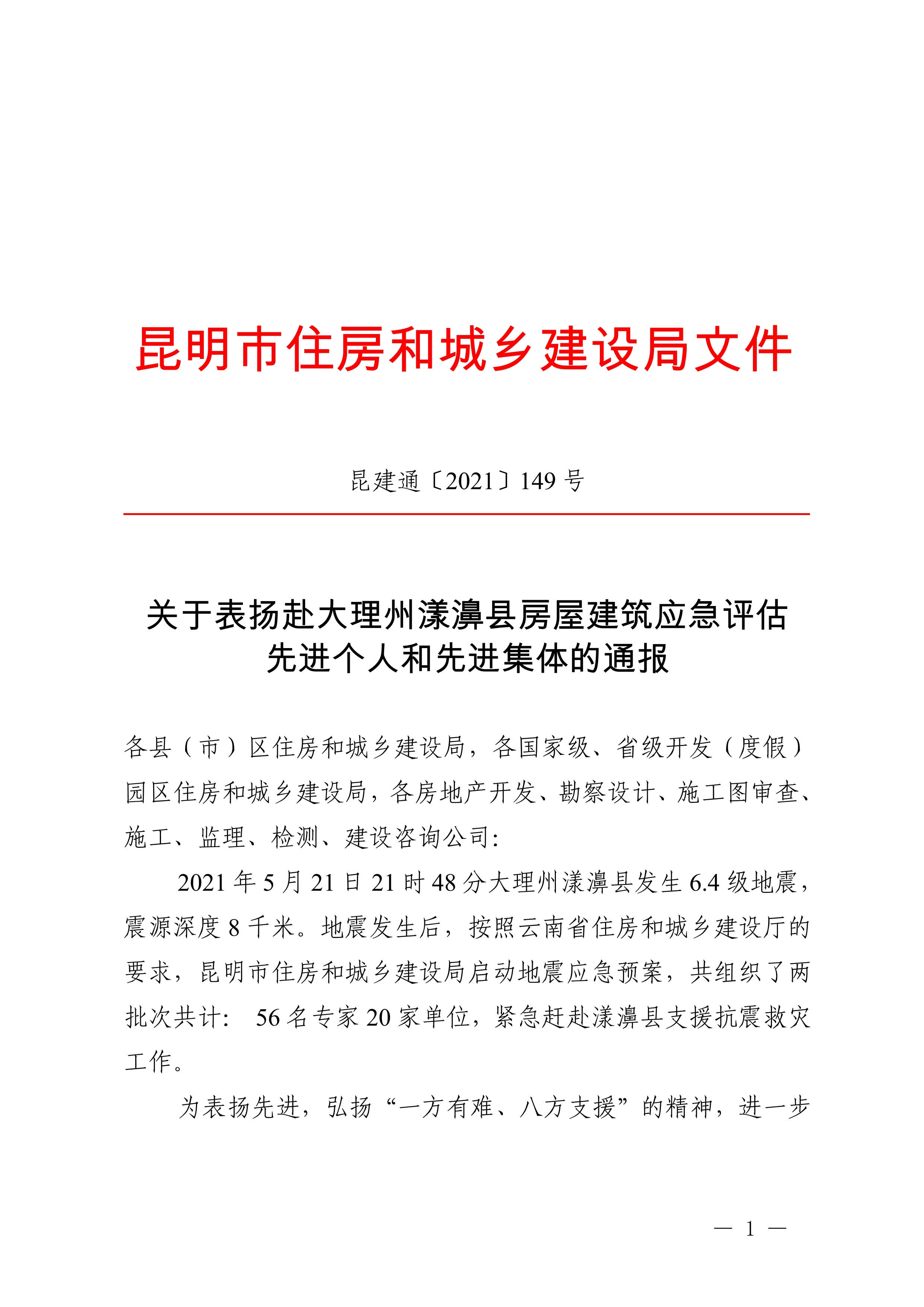 附件:《關(guān)于表揚(yáng)赴大理州漾濞縣房屋建筑應(yīng)急評估先進(jìn)個人和先進(jìn)集體的通報》(昆建通〔2021〕149號)