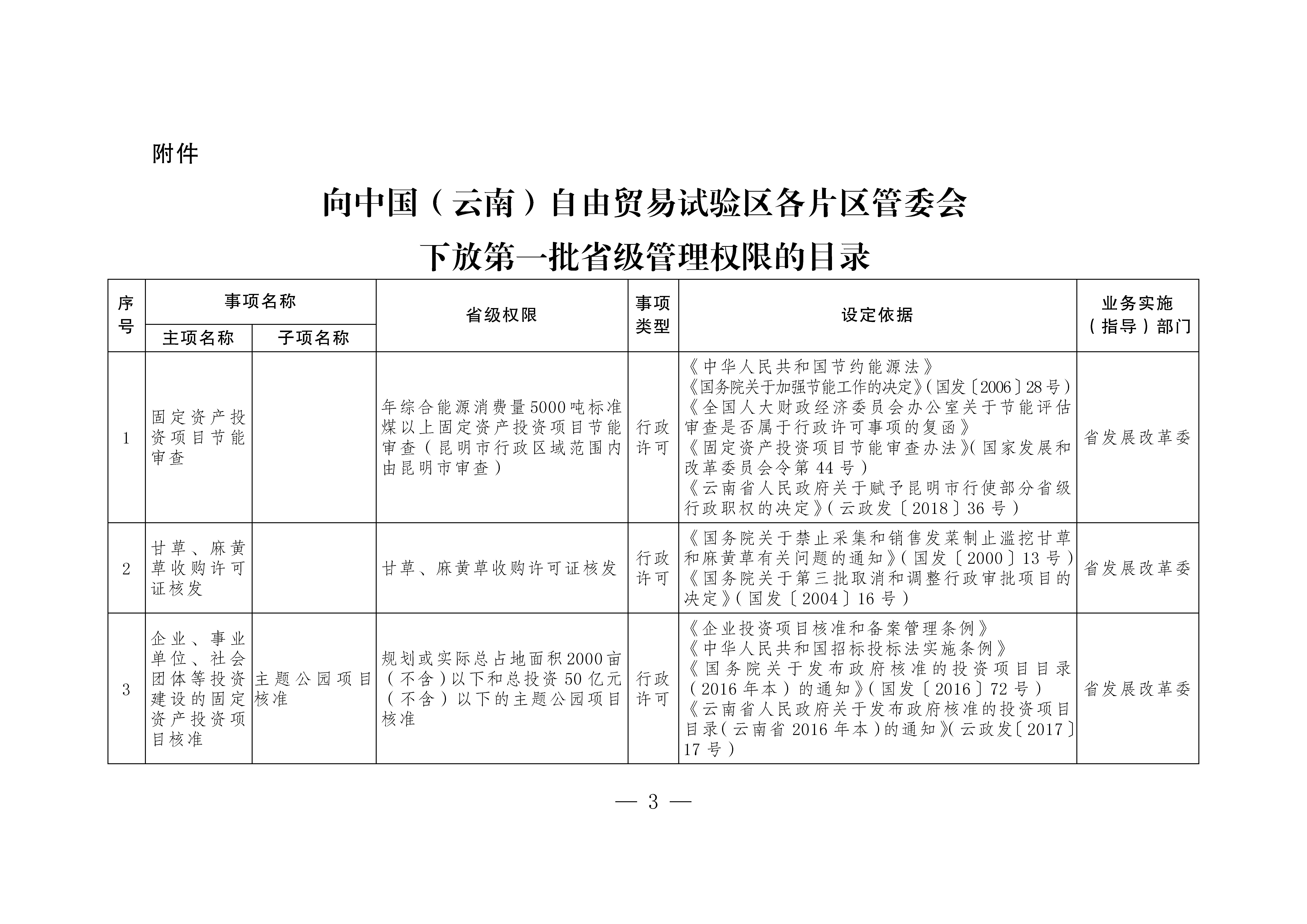 附件:向中國(云南)自由貿(mào)易試驗區(qū)各片區(qū)管委會下放第一批省級管理權(quán)限的目錄