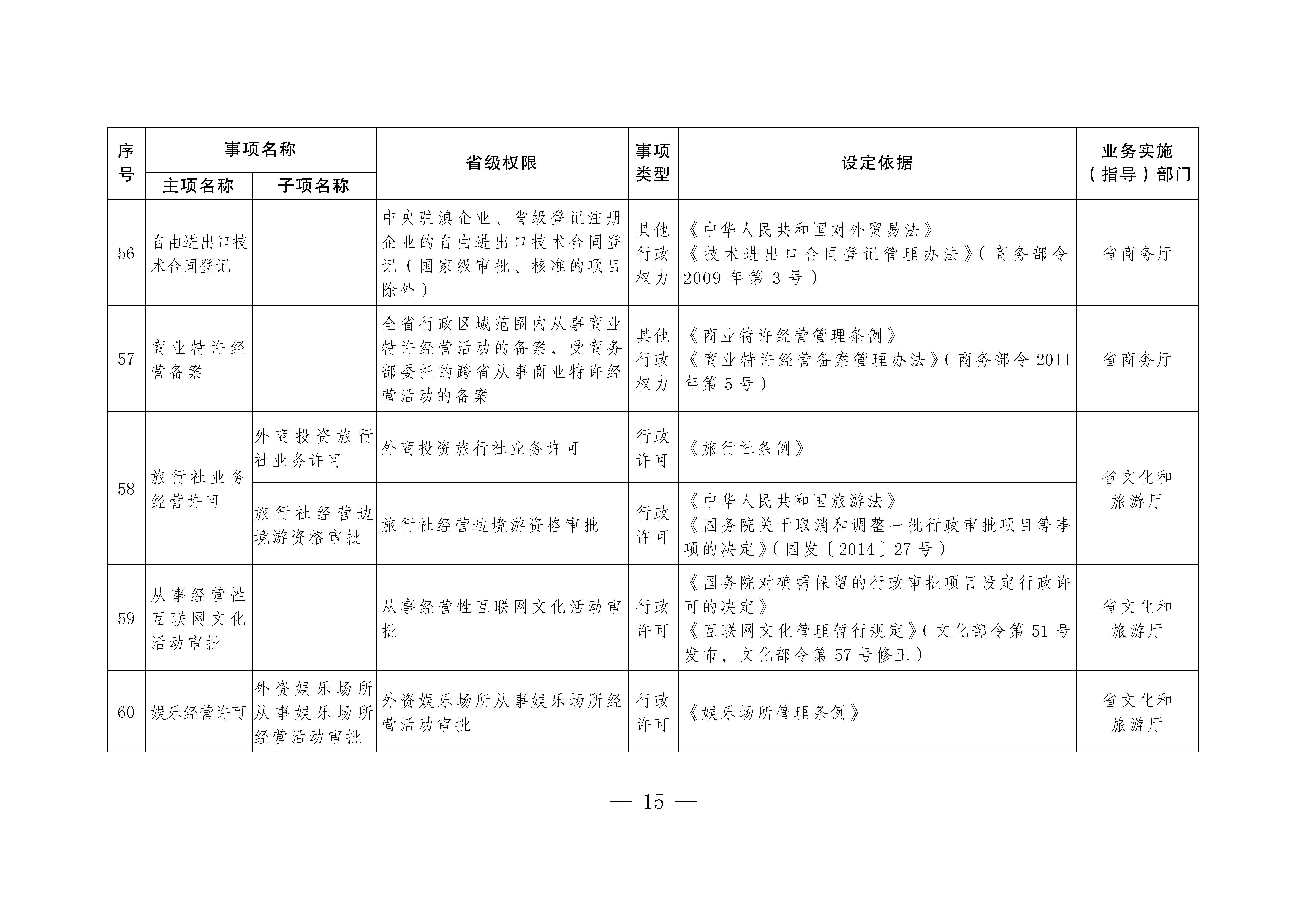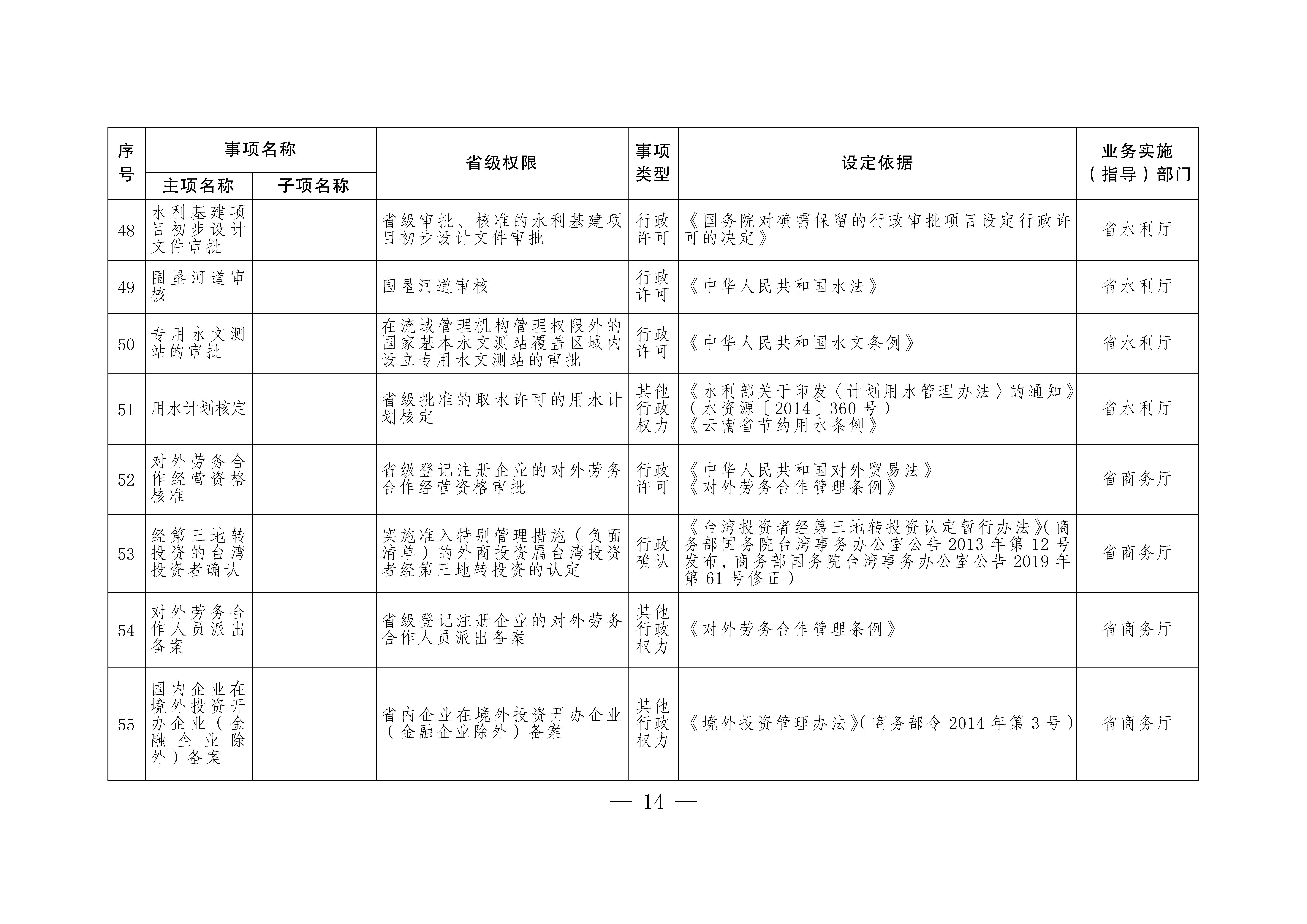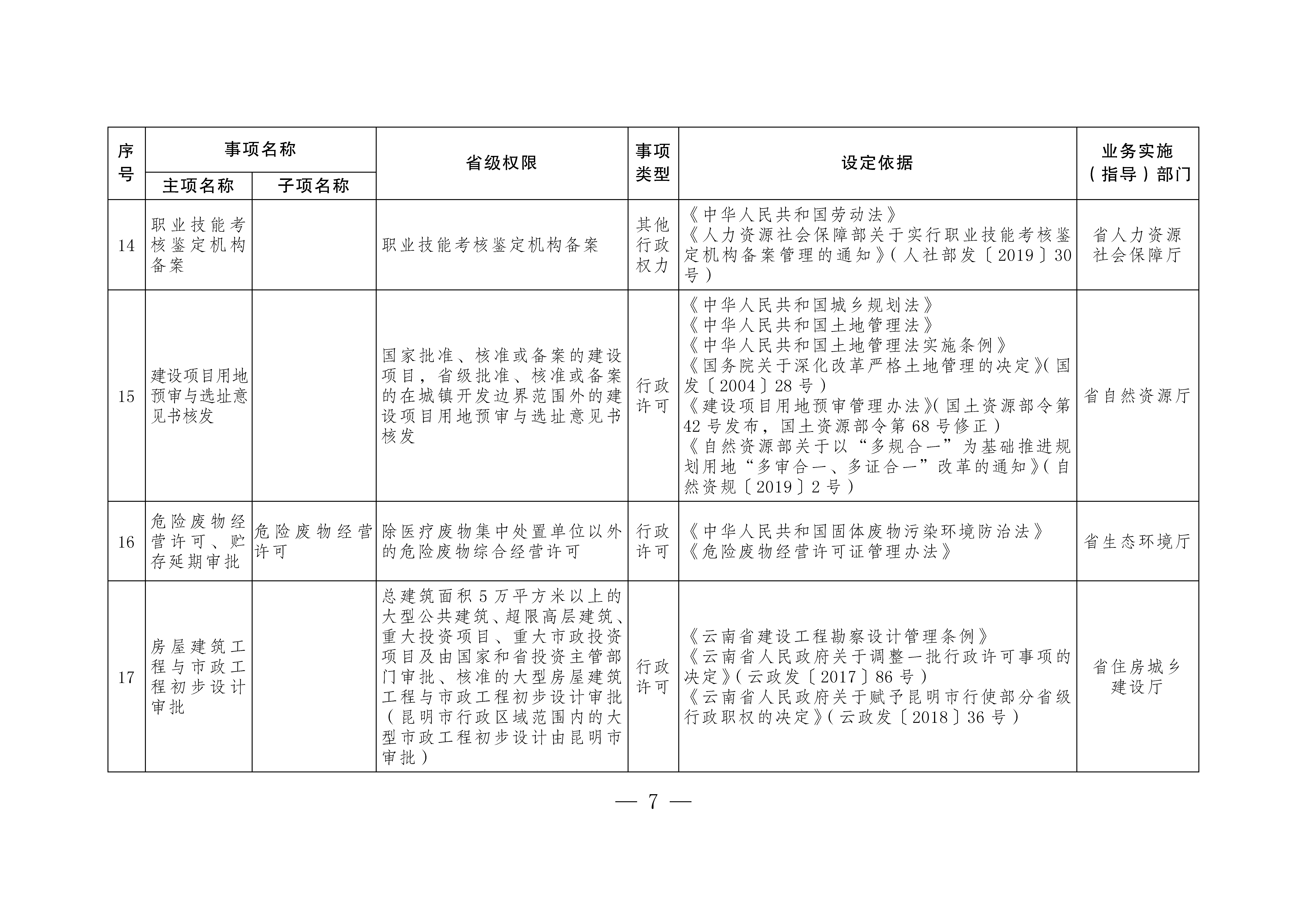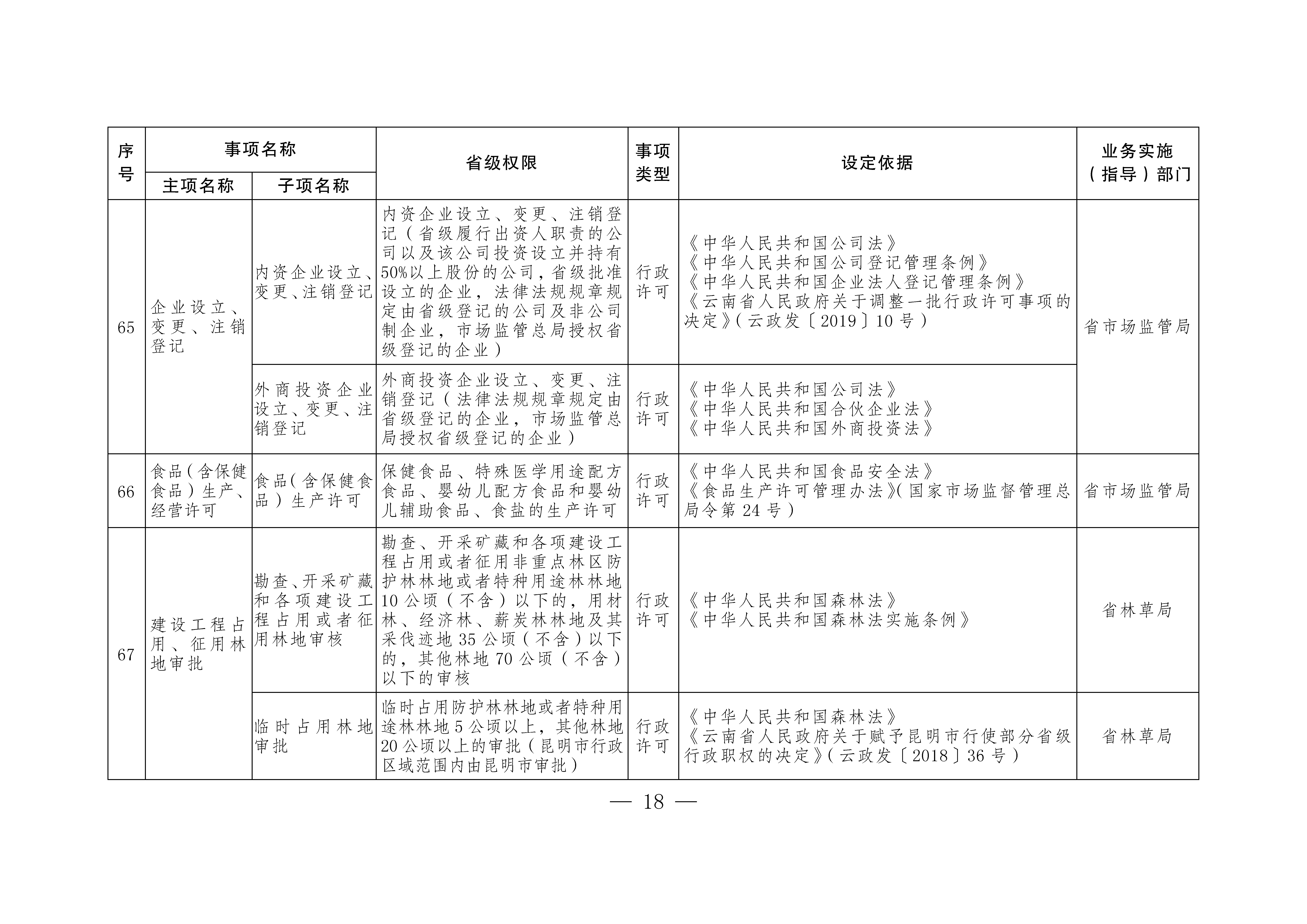 按照《國務院關于印發(fā)6個新設自由貿(mào)易試驗區(qū)總體方案的通知》(國發(fā)〔2019〕16號)和《國務院關于同意新設6個自由貿(mào)易試驗區(qū)的批復》(國函〔2019〕72號)精神,省人民政府研究決定,向中國(云南)自由貿(mào)易試驗區(qū)(以下簡稱云南自貿(mào)試驗區(qū))昆明、紅河、德宏片區(qū)管委會下放第一批省級行政權(quán)力事項73項,其中行政許可事項55項,行政確認事項2項,其他行政權(quán)力事項16項。
