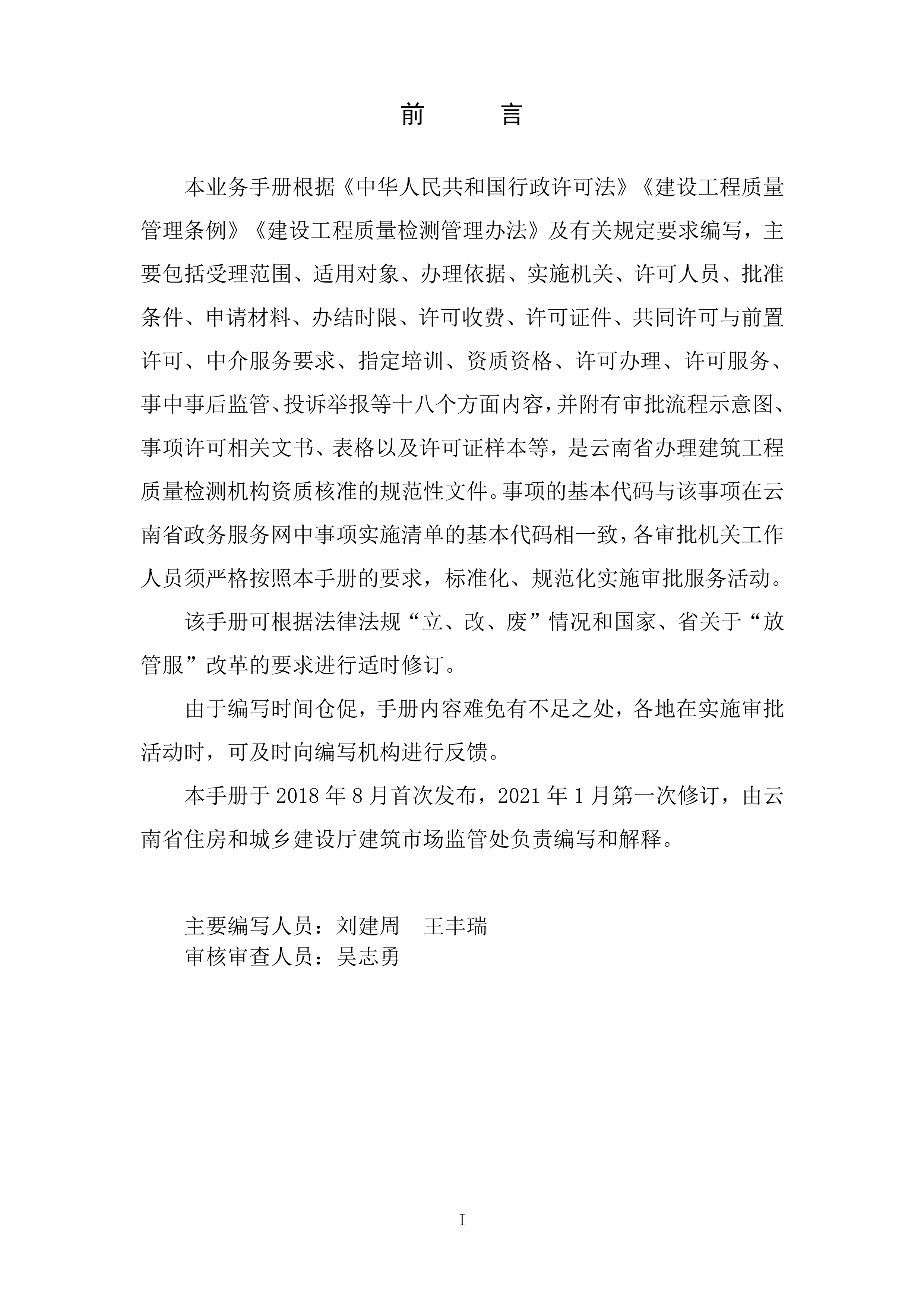 根據(jù)《云南省人民政府關(guān)于調(diào)整482項(xiàng)涉及省級(jí)行政權(quán)力事項(xiàng)的決定的通知》(云政發(fā)〔2020〕16 號(hào))、《云南省人民政府關(guān)于調(diào)整112項(xiàng)涉及州級(jí)及以下行政權(quán)力事項(xiàng)的決定》(云政發(fā)〔2020〕21號(hào))、《云南省人民政府辦公廳關(guān)于公布云南省省級(jí)政務(wù)服務(wù)事項(xiàng)(2020年版) 的通知》(云政辦發(fā)〔2020〕39 號(hào))、《云南省人民政府關(guān)于向中國(云南)自由貿(mào)易試驗(yàn)區(qū)各片區(qū)管委會(huì)下放第一批省級(jí)管理權(quán)限的決定》(云政發(fā)〔2020〕34號(hào))等文件精神,省住房城鄉(xiāng)建設(shè)廳于2021年1月20日對(duì)涉及省級(jí)下放自貿(mào)區(qū)各片區(qū)的“建筑施工企業(yè)安全生產(chǎn)許可證核發(fā)”等9項(xiàng)政務(wù)服務(wù)事項(xiàng)辦事指南和業(yè)務(wù)手冊(cè)進(jìn)行了編寫或修訂,現(xiàn)將“建設(shè)工程質(zhì)量檢測(cè)機(jī)構(gòu)資質(zhì)核準(zhǔn)業(yè)務(wù)手冊(cè)和辦事指南(完整版)”發(fā)布如下: