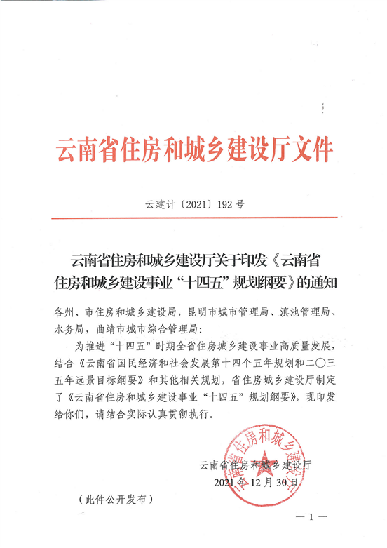 云南省住房和城鄉(xiāng)建設(shè)廳關(guān)于印發(fā)《云南省住房和城鄉(xiāng)建設(shè)事業(yè)“十四五”規(guī)劃綱要》的通知