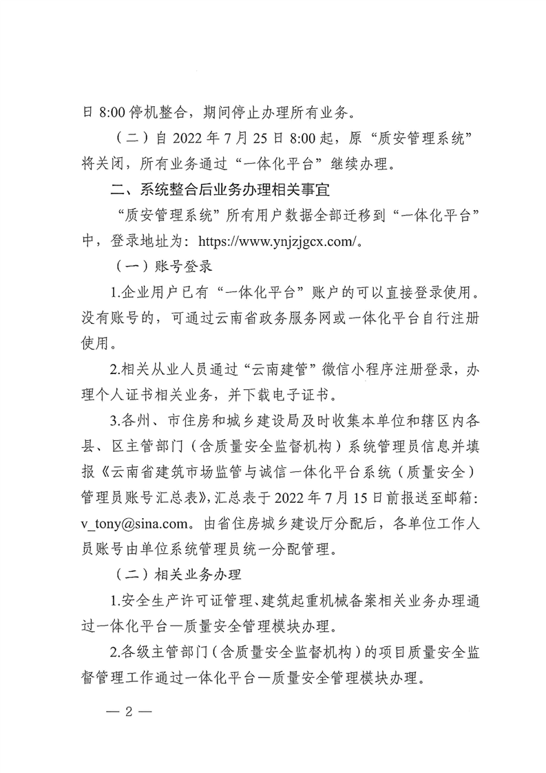 云南省住房和城鄉(xiāng)建設(shè)廳關(guān)于云南省建設(shè)工程質(zhì)量安全監(jiān)督管理信息系統(tǒng)功能整合停機(jī)的通知