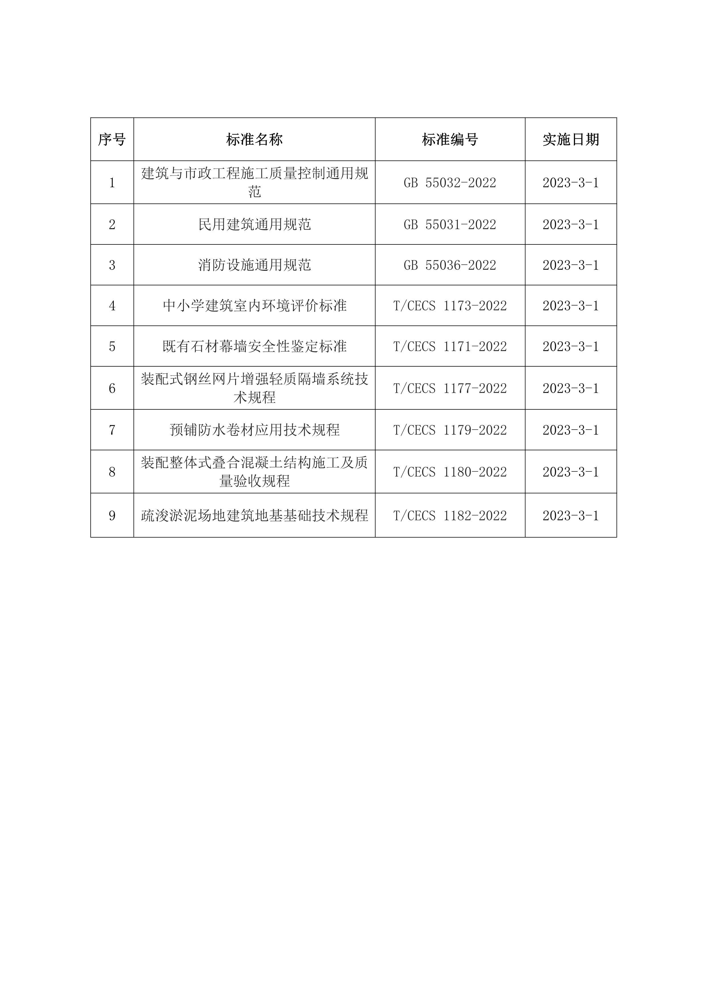 2023年3月開(kāi)始實(shí)施的工程建設(shè)標(biāo)準(zhǔn)